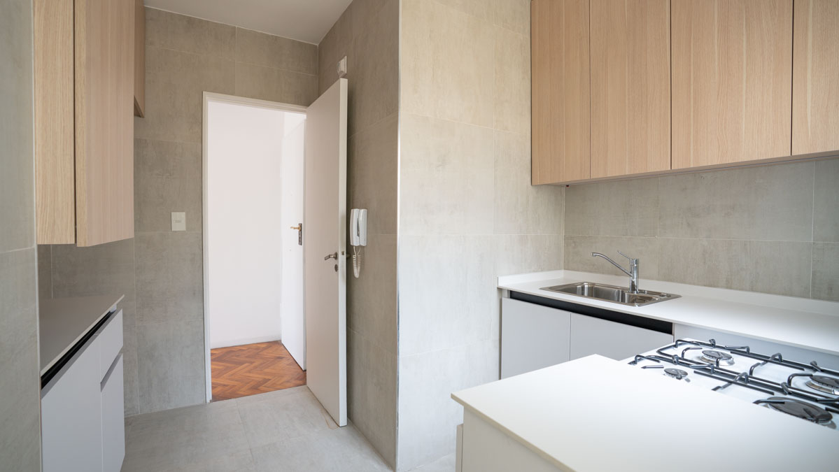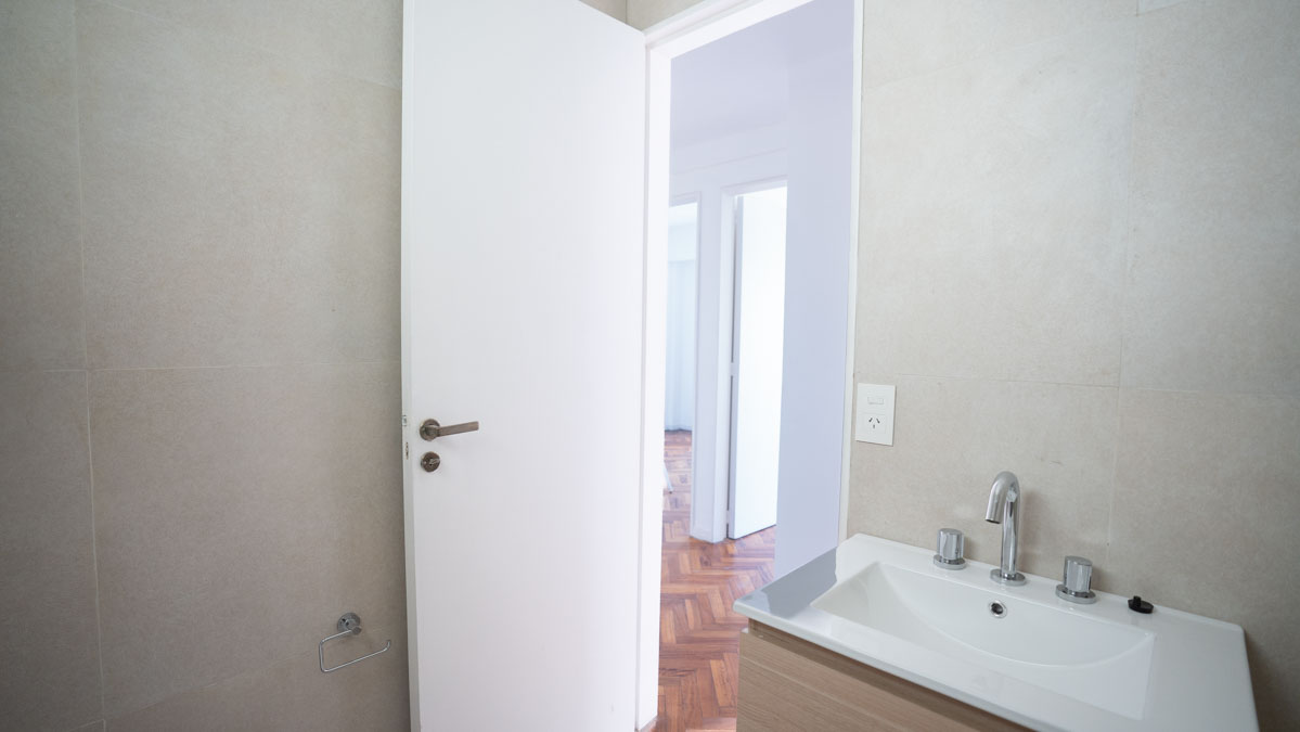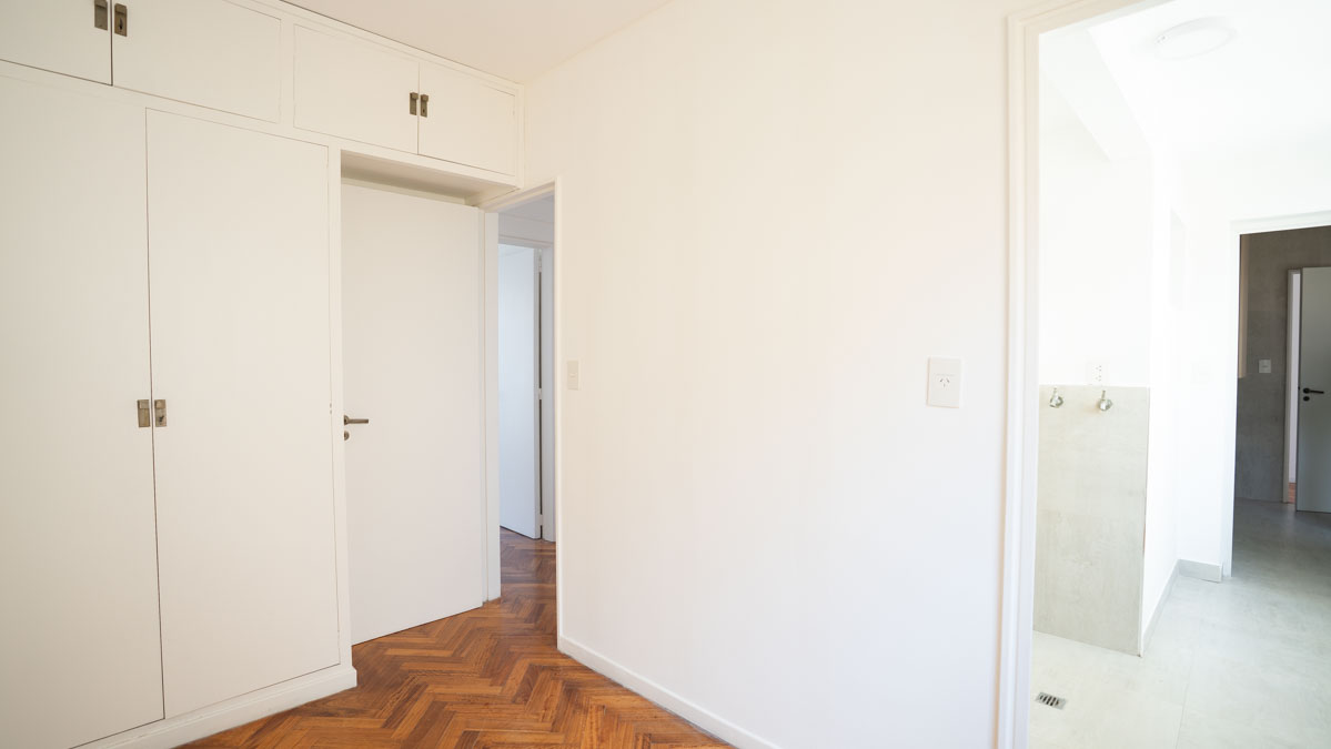 – Tres dormitorios amplios, incluyendo suite principal con vestidor. Dos al contrafrente y uno al aireluz. Posibilidad de generar un cuarto dormitorio.
