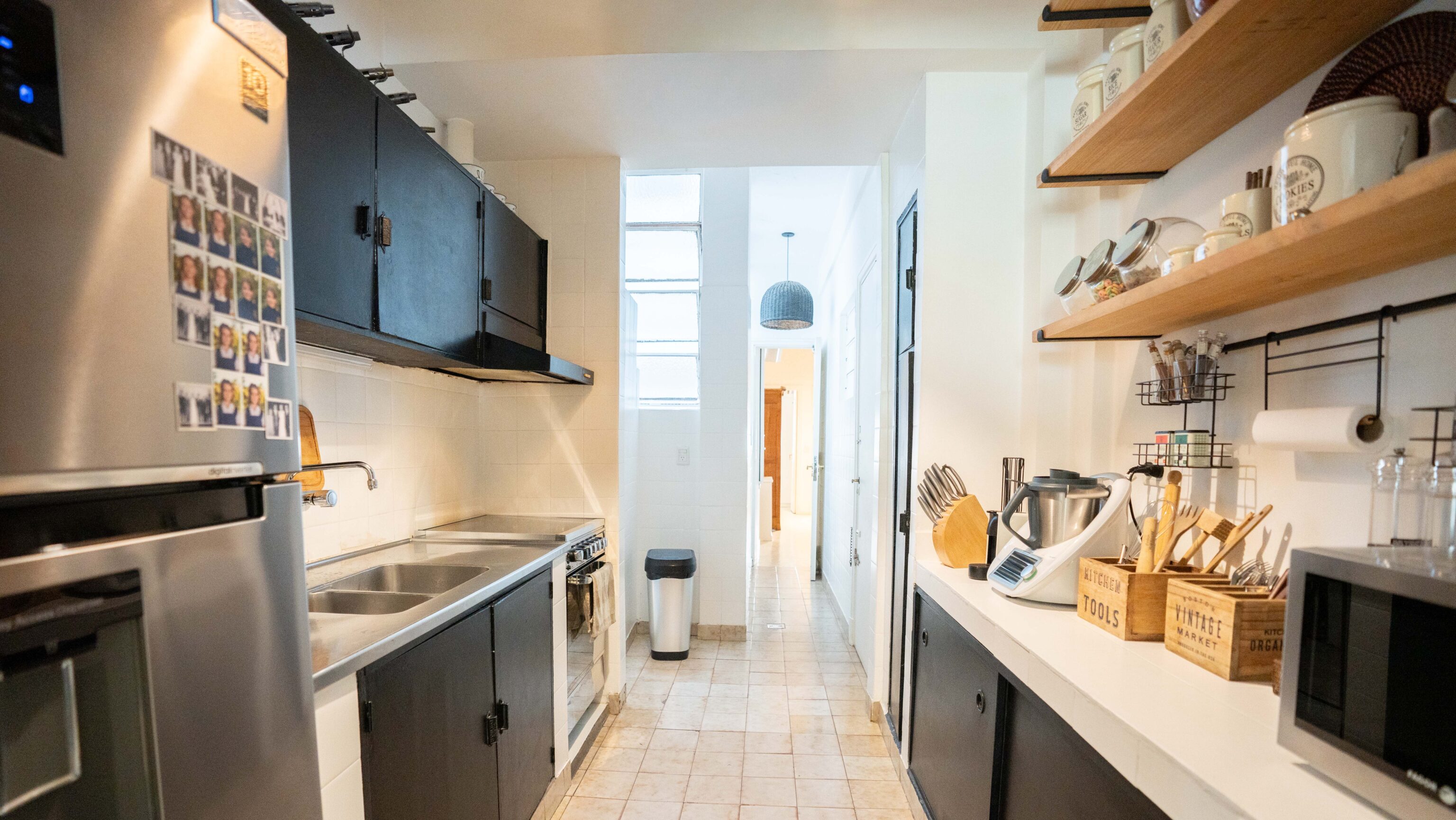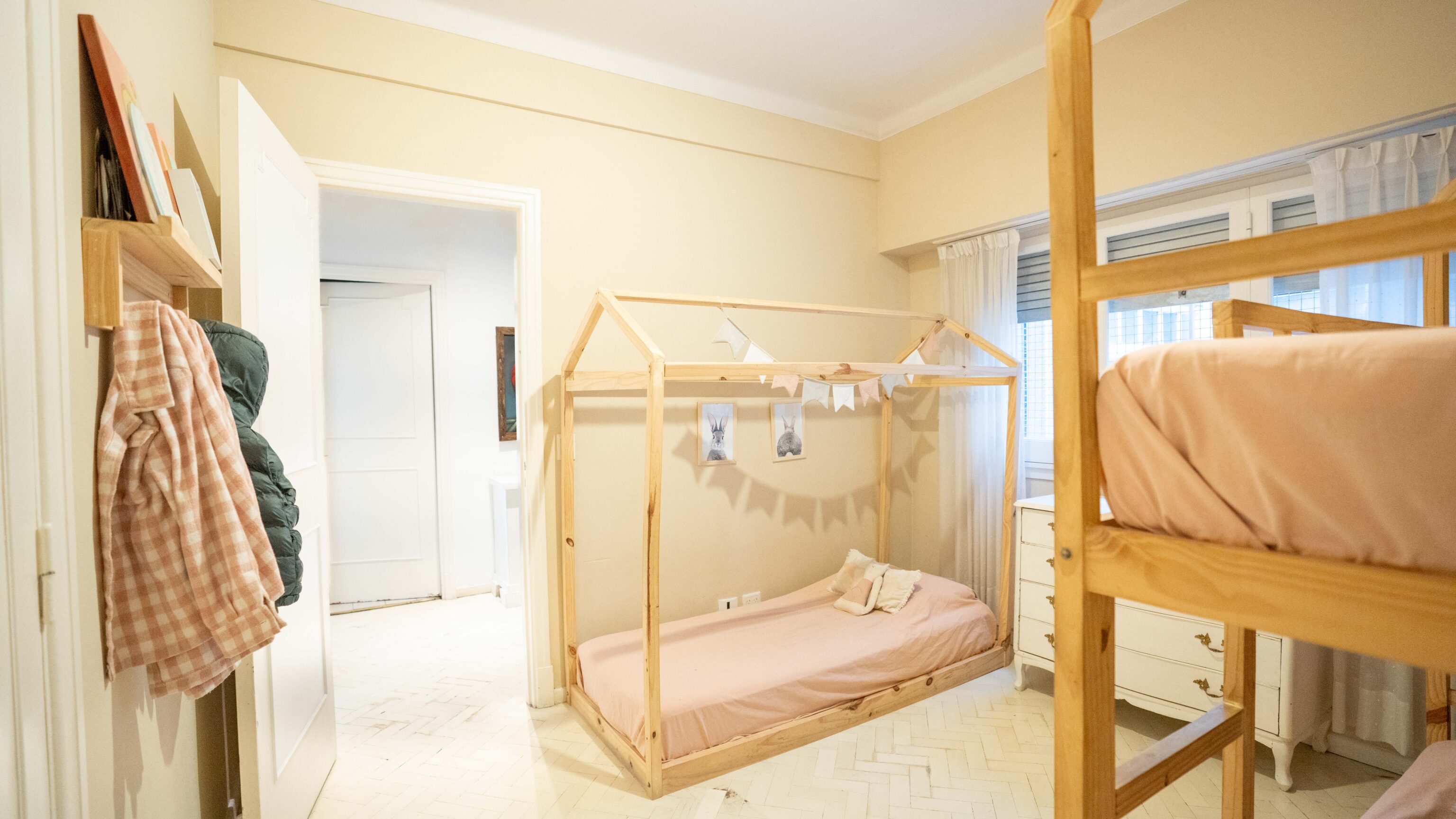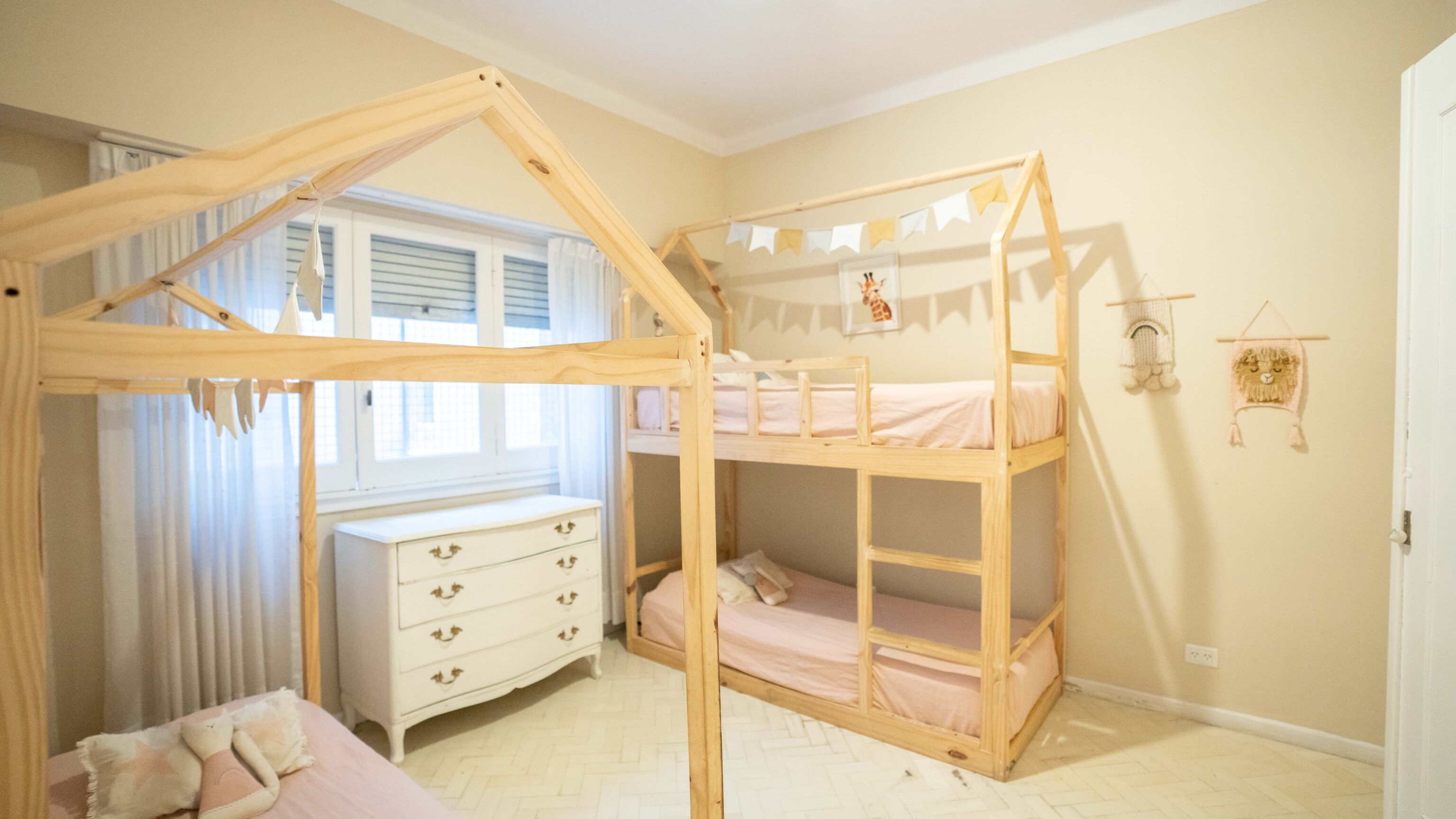 – Tres dormitorios de amplias medidas (4,10×3,95 m2 / 4,10×4,40 m2 / 3,50×3,30 m2): dos al contrafrente, con muy buena luz natural, y un tercero al aireluz, todos con placares grandes que aportan comodidad y capacidad de guardado.