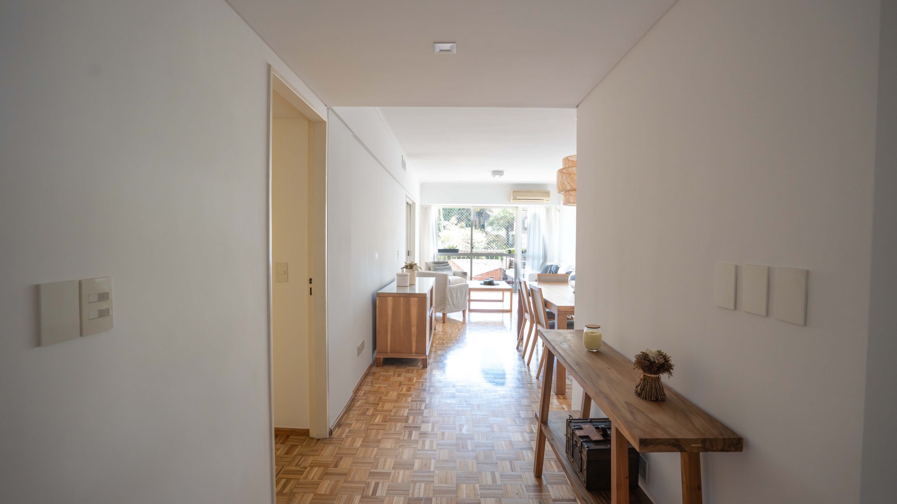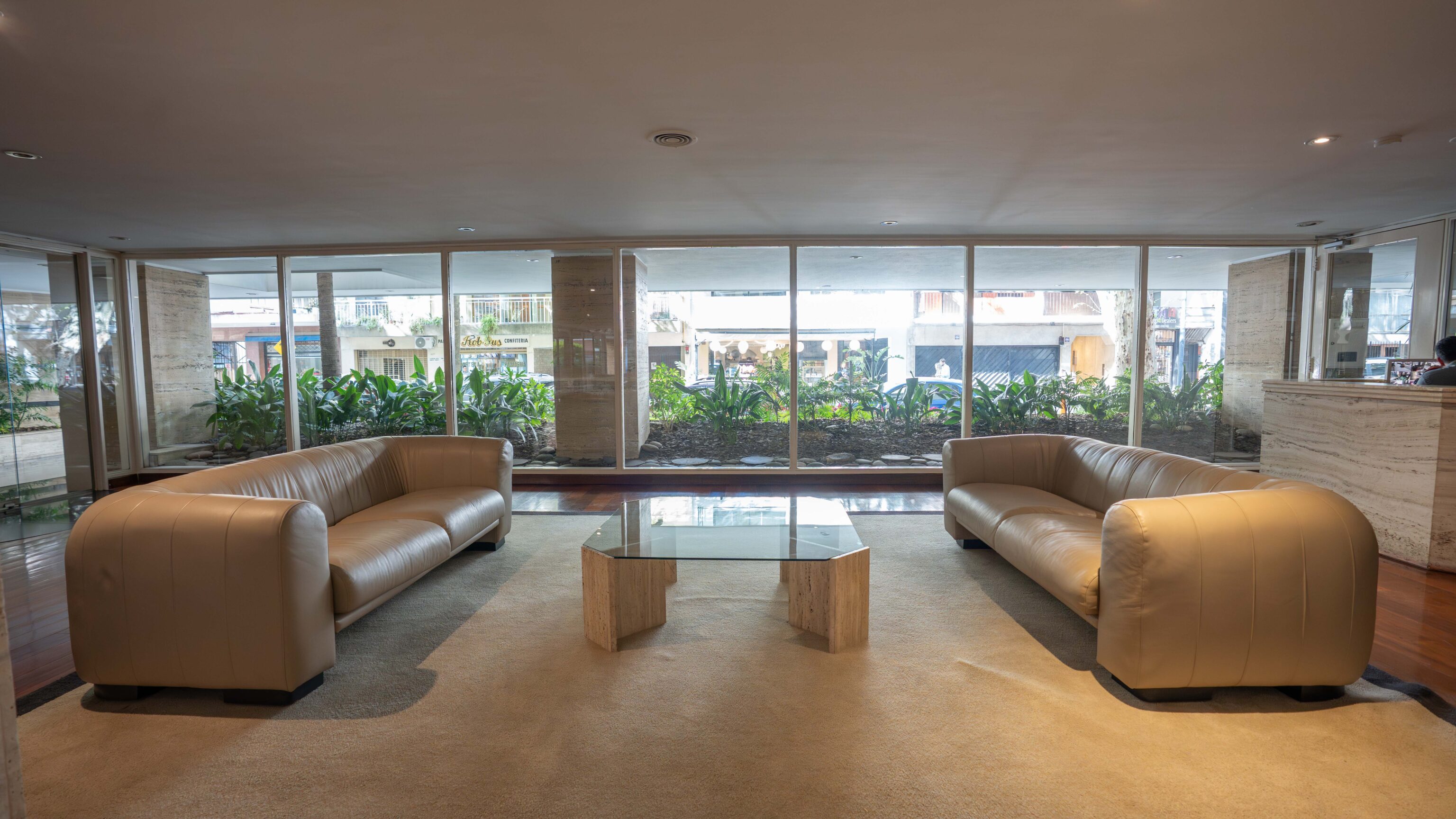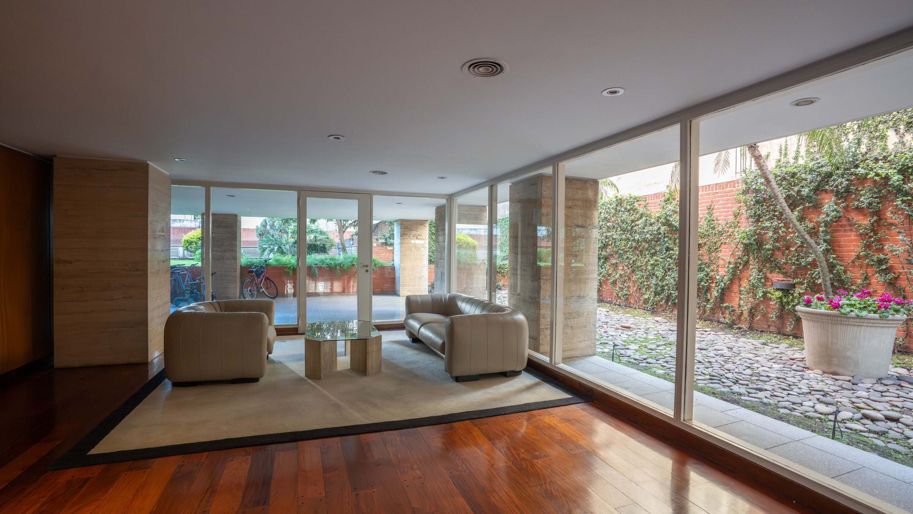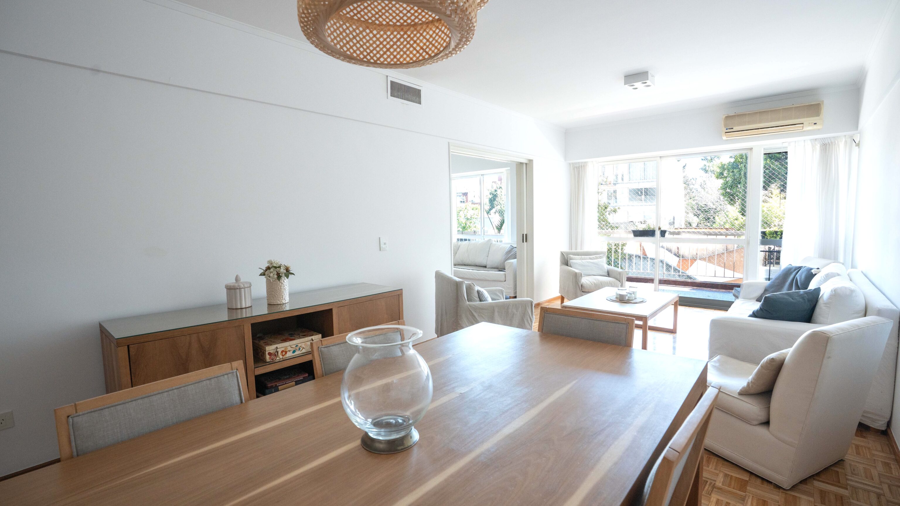 – Living comedor con vista abierta al jardín del edificio y salida a balcón amplio.