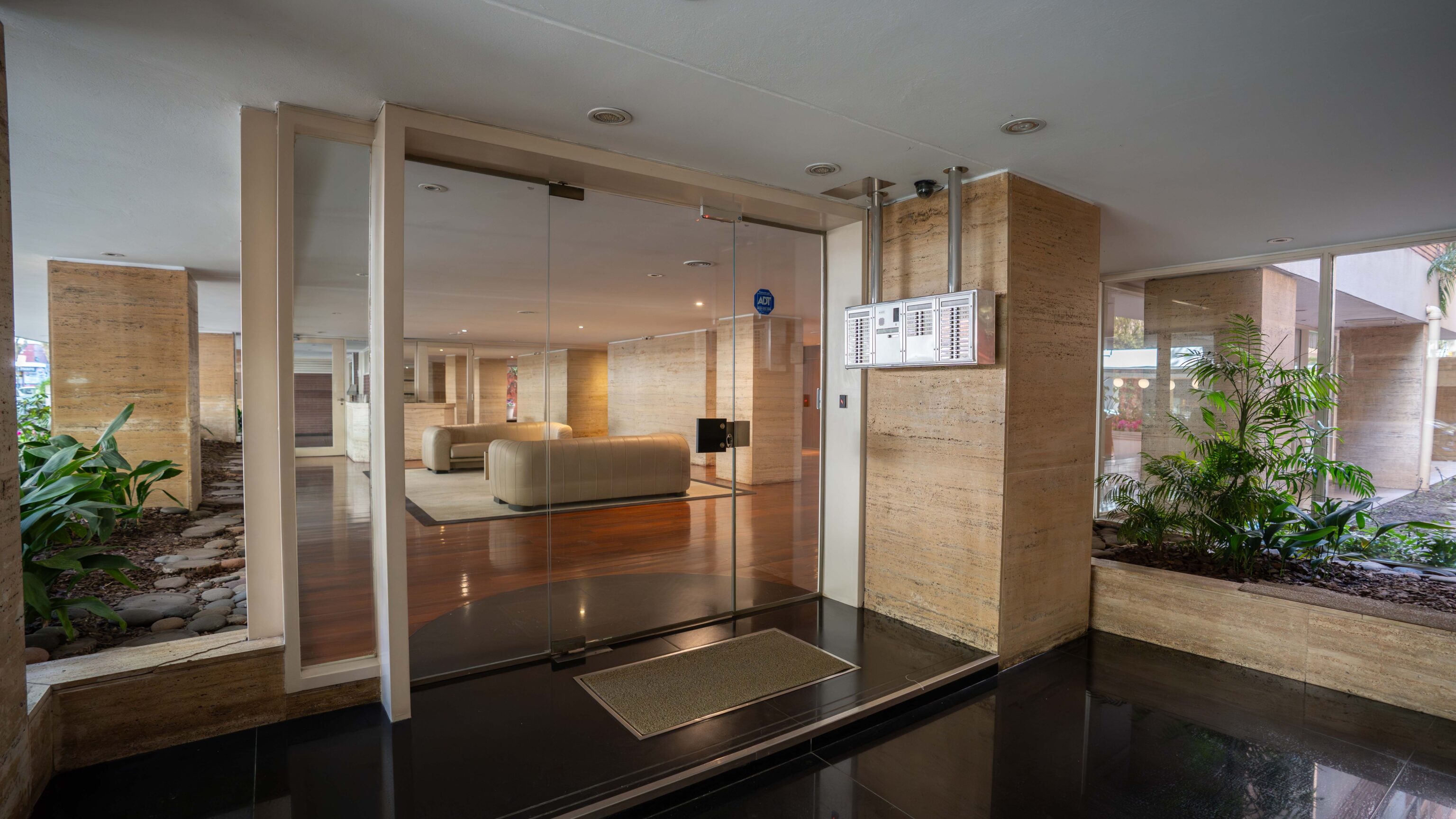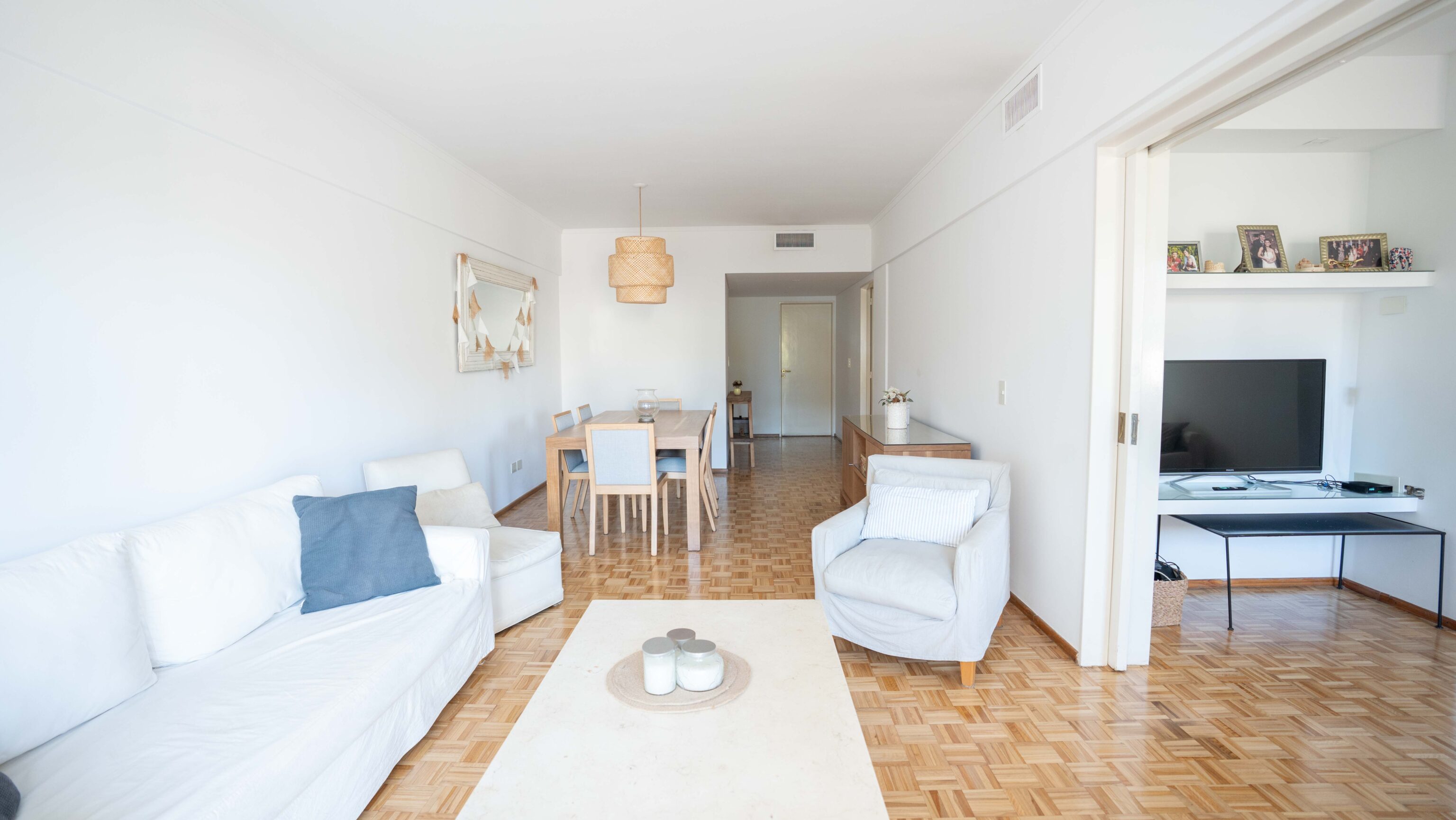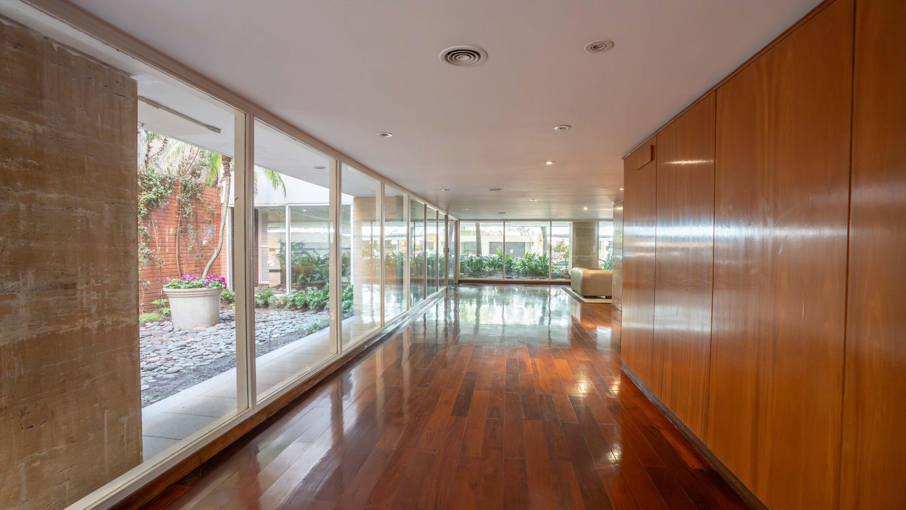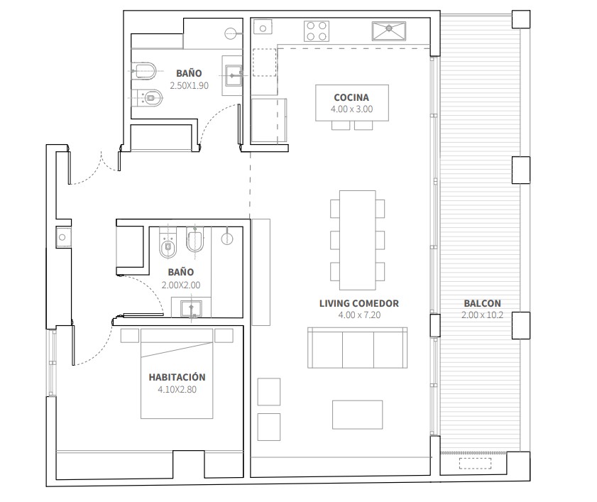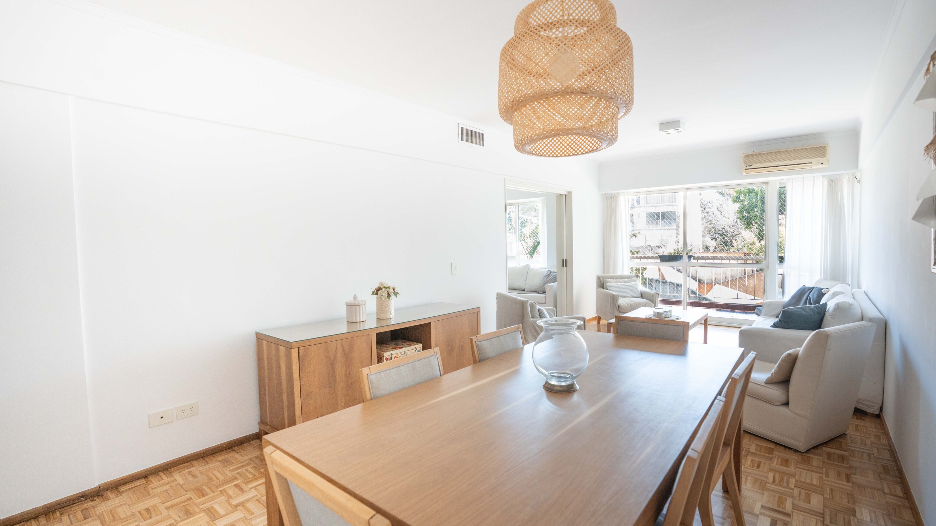 – Living comedor con vista abierta al jardín del edificio y salida a balcón amplio.