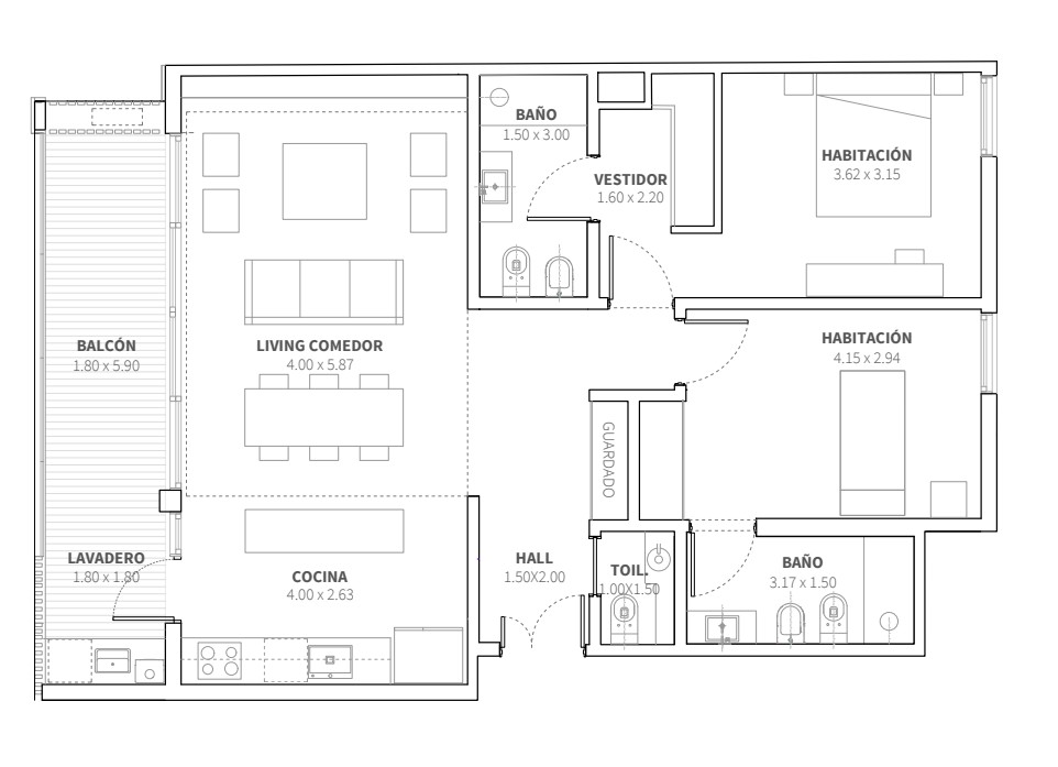 – Doble circulación que optimiza la funcionalidad y la independencia de cada ambiente.